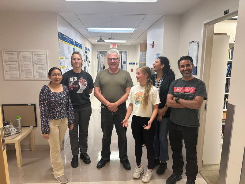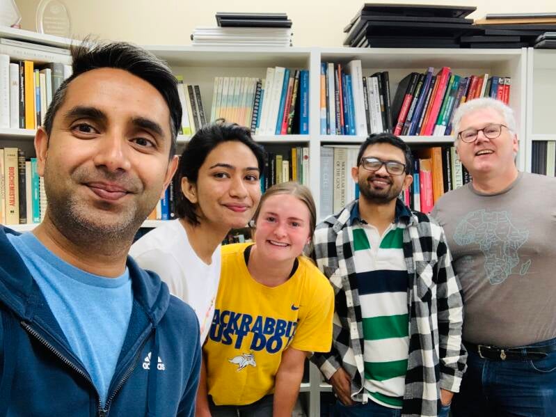Congratulations Dr Armaan Kaur Sandhu on a stellar Ph.D. program! We were so excited that we did an unofficial graduation right there and then! From left to right: Johnathan Orosz, Sukhvir Kaur Sarao, Dr Sandhu, Volker Brozel and recent graduate from the lab Dr Bikram Das.